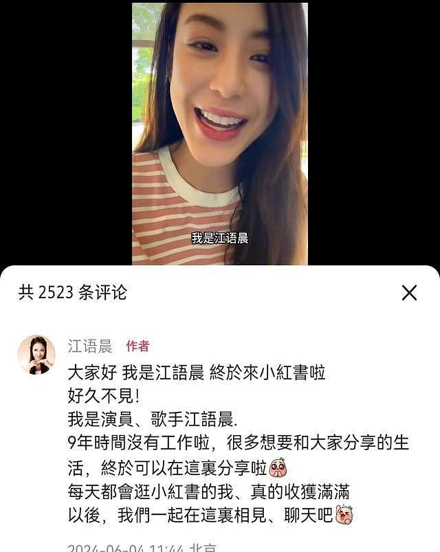 01 江语晨在2025年10月3日通过小红书平台发布视频,公开了自己离婚的消息。